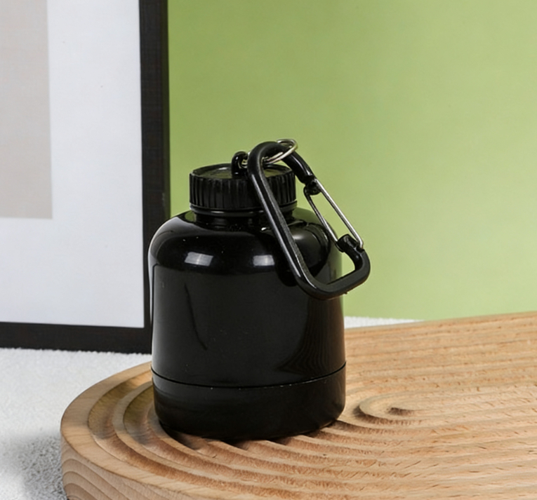 Portable Protein Powder Dispenser With Carabiner And Funnel Design